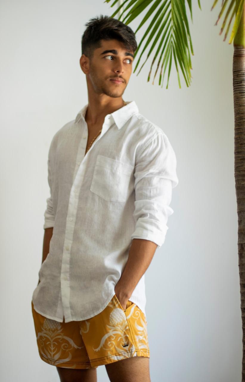 A luminosidade do branco predomina nas sugestões dos looks masculinos da Bilbao para todos os estilos de festas de Réveillon. Nas grandes comemorações na praia, na piscina ou em pequenas reuniões, o branco surge total ou como base para estampas e pode combinar com tons fortes e nudes. Mas para quem quer fugir da tradição, o azul é uma das fortes tendências que segue o espírito da coleção Verão 2020 da Bilbao, que se encontra nas vitrines e araras das lojas na Av. Sabino Silva, 942, no Jardim Apipema e do Salvador Shopping.